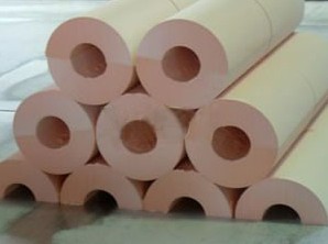 酚醛樹脂保溫管具有獨特的設計,以管道為模型,將其加工成兩個半圓形,管壁邊設有獨特的吻合槽,安裝方便,外形美觀,對於閥門、三通、彎頭等複雜部件,可將管材裁切後按不同形狀包上粘合,確保整個形同的嚴密性,從而保證了整個形同的保溫性.